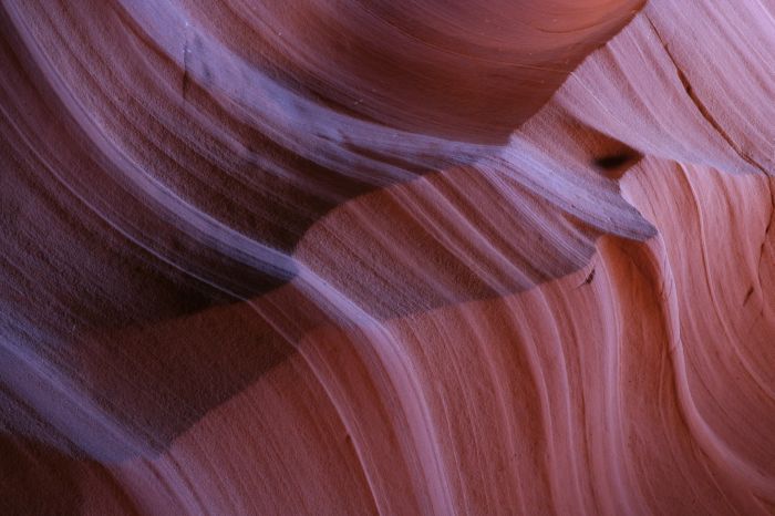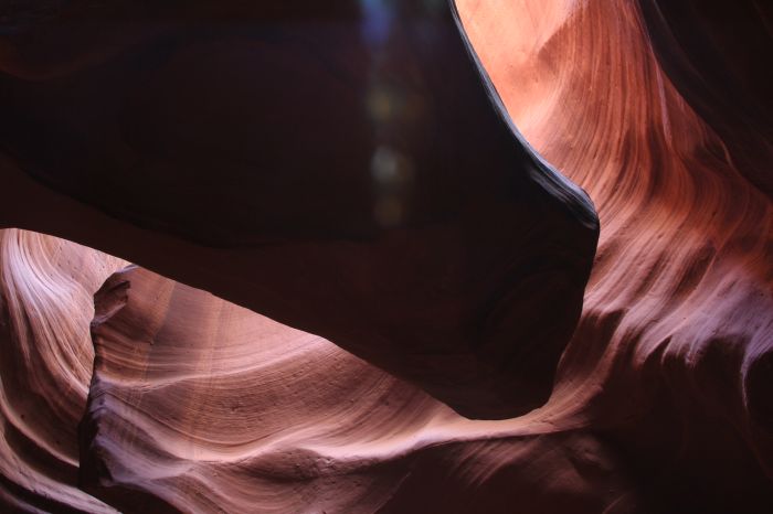 Antelope Canyon is a slot canyon formed from erosion of the flood waters flowing through