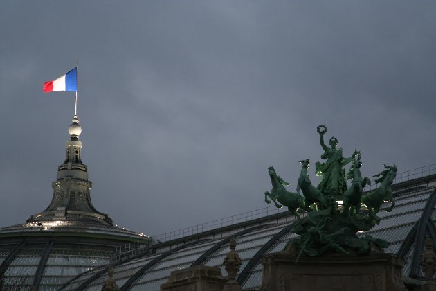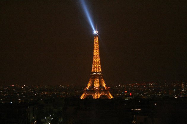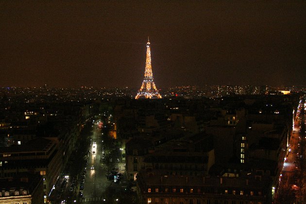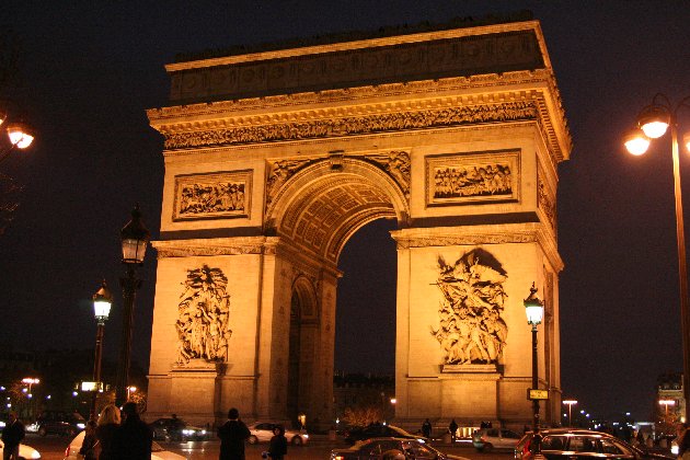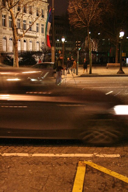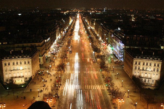 Chris in the middle of le Champs Elysees taking pictures of le Arc de Triomphe.