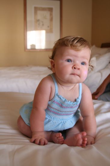 Claire is sitting up by herself! Here she is at 5 months old.