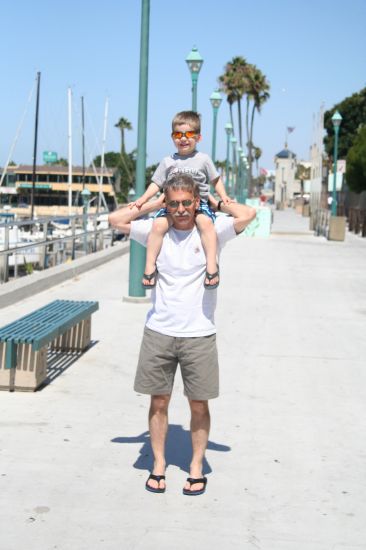 ride from his Grandpa and wearing his Uncle Chris' sunglasses.