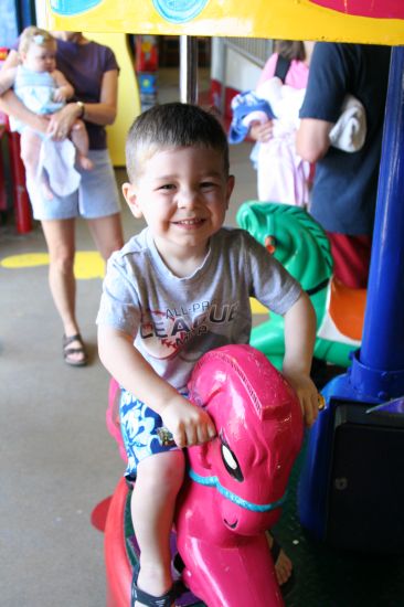 Cade liked riding the little horse carosel ride. Notice the color he chose. :)
