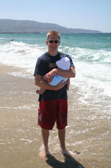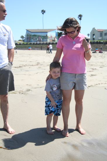 We walked from the hotel to the beach nearby, and Cade had fun getting a shoulder