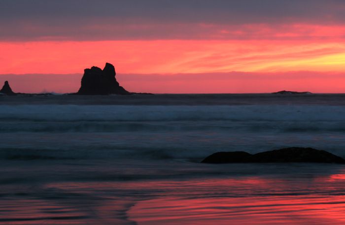 After exploring the rainforest during the day, Chris and I headed back to Second Beach for