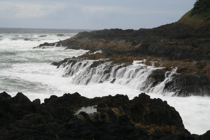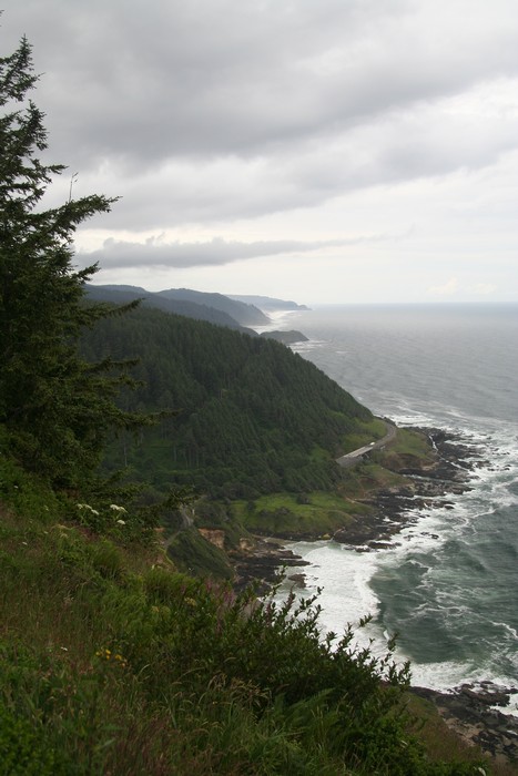 View looking down on Cape Perpetua and the trail to Devils Churn.