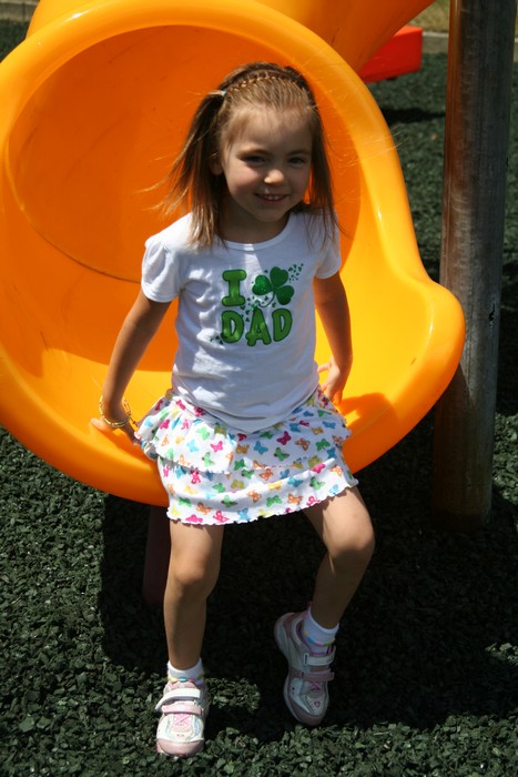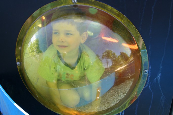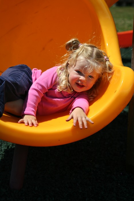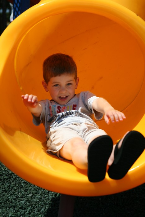 Cade coming down the slide.
