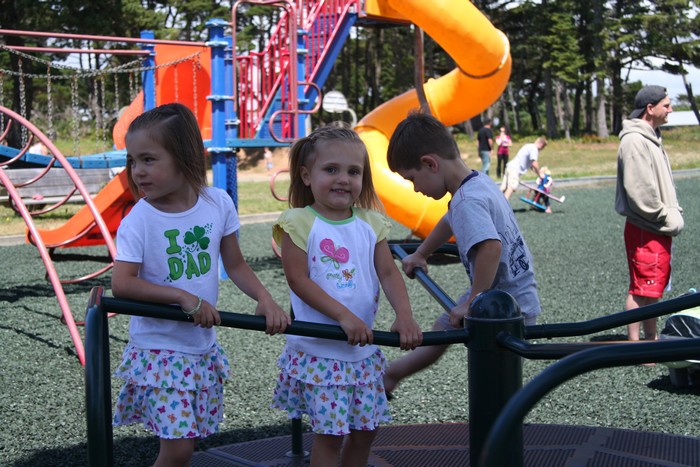 The kids were on the merry-go-round while we pushed them.