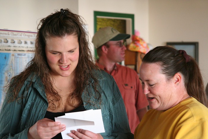 Rachel looking through Kerri's pictures.