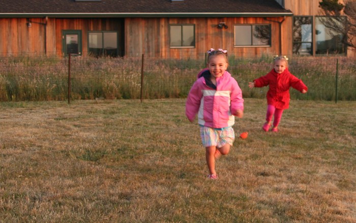 Triniti and Araya running in the yard. Good game, huh? :)