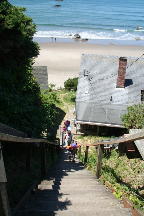 Looking down the stairs at Cade, Amy, Mom and Claire coming up.